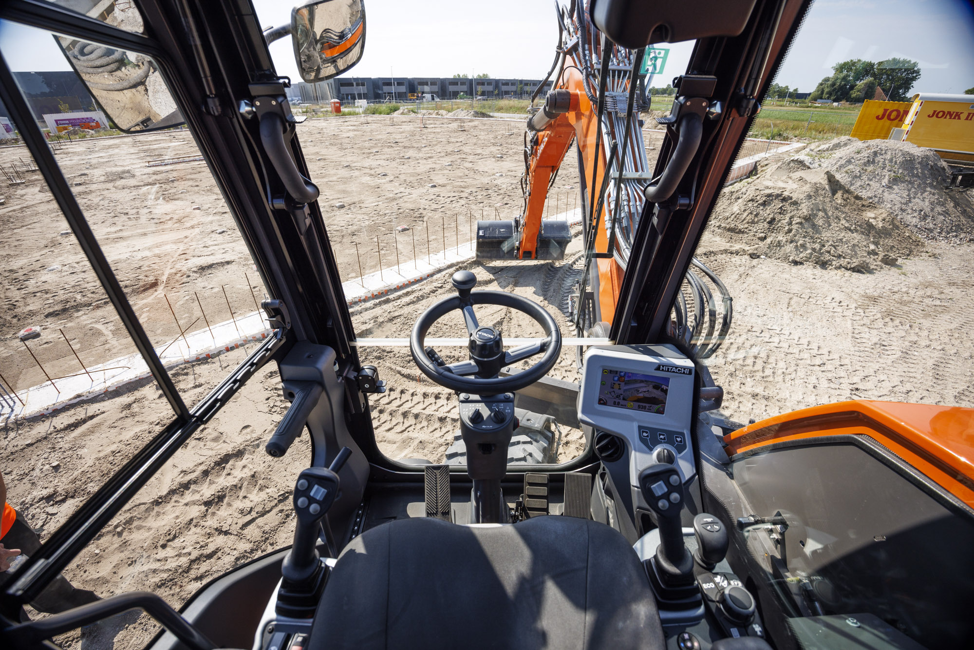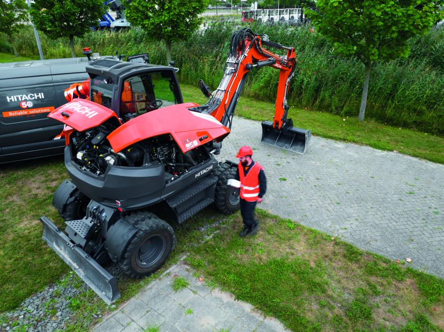 Kompaktowa koparka kołowa Hitachi ZX95W-7 o masie ok. 9,5 tony, idealna do modernizacji infrastruktury miejskiej. Silnik o mocy 55 kW zapewnia dynamiczne przemieszczanie się między punktami roboczymi. Dzięki czterem kołom skrętnym, maszyna charakteryzuje się minimalnym promieniem skrętu, co pozwala na pracę na jednym pasie jezdni. Głębokość kopania ok. 4 m. System HIOS V dba o precyzję pracy osprzętu. Kabina oferuje panoramiczną widoczność i nowoczesny interfejs sterowania. To wszechstronny nośnik osprzętu, który dzięki napędowi 4×4 i blokadzie mostów radzi sobie świetnie nawet w miękkim terenie budowy.